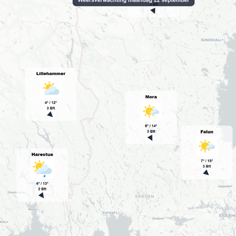 Vooral de maand juli leverde dit jaar in grote delen van Scandinavië prachtig zonnig en warm zomerweer op. Inmiddels is het al volop herfst en de temperaturen in het noorden van Scandinavië en in het binnenland van Noorwegen dalen al regelmatig tot iets onder het vriespunt.