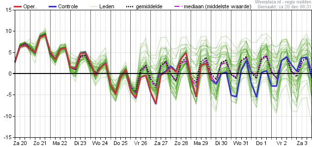 Met een doorstaande oostenwind wordt namelijk koude en vrij droge lucht aangevoerd. De dauwpunttemperatuur zakt flink omlaag (misschien wel tot rond -15 graden op 2e kerstdag) en overdag komt ondanks de doorbrekende zon de temperatuur niet of nauwelijks boven nul uit. Er staat wel veel wind en het oppervlakte water is nog warm, dus of de vorming van natuurijs in Nederland de komende dagen heel snel gaat is nog maar zeer de vraag.